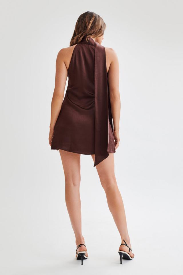 For dinner with the girls.Step into chic elegance with the AUBRIELLA Halter Mini Dress with Tie, a versatile addition to your wardrobe. Featuring a wrap-around neck sash, this dress offers a sophisticated and customisable fit. The relaxed fit ensures comfort, while the lining provides a smooth and flattering silhouette. Complete with a side zip for easy wear, the Aubriella Halter Mini Dress with Tie is perfect for any occasion. Elevate your ensemble with this stylish and effortless dress that exudes timeless charm and modern flair.