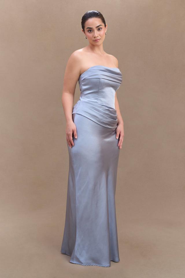 Jasmine Strapless Satin Maxi Dress – Frosted Blue…