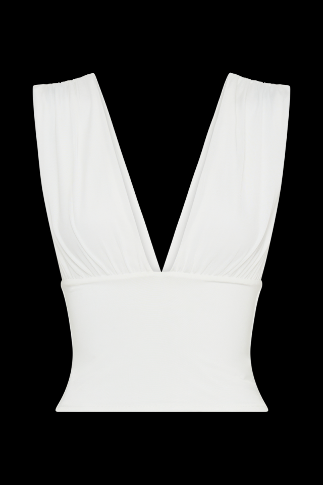 Ruched for a flawless fit. The KERRIGAN Slinky Ruched Sleeveless Top offers a perfect blend of elegance and sensuality. With a deep V neckline, this top creates a striking silhouette that accentuates your décolletage. The gathered bust panels add texture and shape, while the fitted low waist panel provides a sleek, contoured fit. Lined for a smooth, comfortable finish, the Kerrigan top is versatile and can be dressed up or down. Pair it with high-waisted trousers or skirts for a chic, sophisticated look that’s perfect for any occasion.